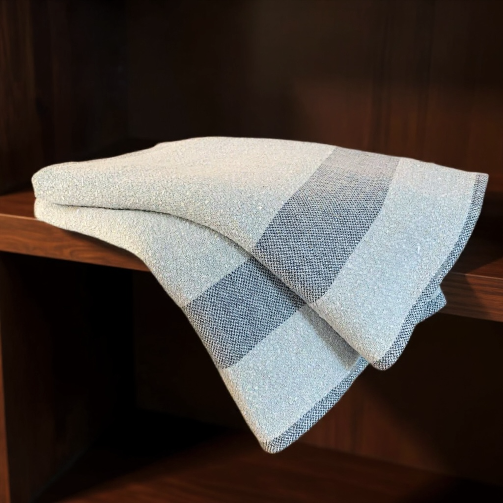 Leinenfreunde werden sie mögen, unsere eleganten Leinenfrottee-Duschtücher. Gefertigt werden sie aus einem seltenen, reinen Leinenbouclégarn im Schuss und einem Cottolingarn in der Kette. Das Bouclégarn erzeugt mit seinen vielen kleinen Schlingen eine stark Wasser saugende Oberfläche mit angenehmer Haptik. Schmale Zierstreifen in Dunkelgrau lockern die Optik auf und wiederholen sich in den Säumen.