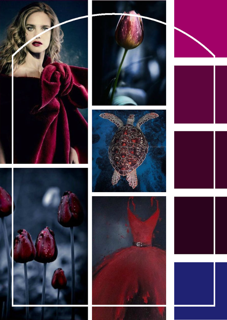 Pate für den farblichen Entwurf der Schal-Serie Arabian Night war eine dunkle Tulpenblüte. Die Kette hat einen Farbverlauf von leuchtendem Beere hin zu samtig mattem Cabernet und Aubergine. Darauf erscheint unser Jacquardmuster Piastelle in Mitternachtsblau.